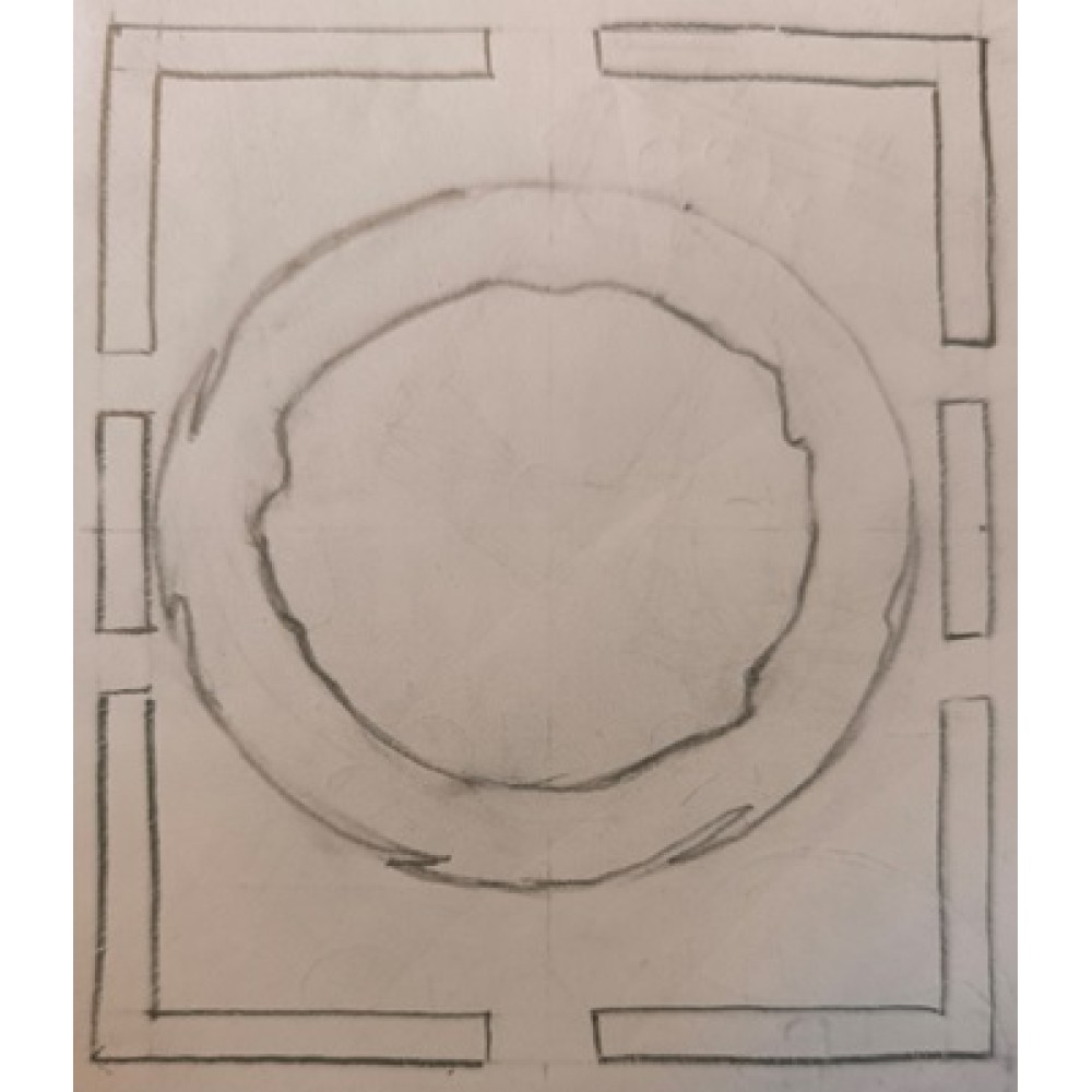 Патч с изображением буквы O. Почти вся наша вышивка сначала рисуется от руки, затем мы переносим её в программу.