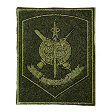 Знак нарукавный Военно-Космические Силы Российской Федерации вышитый с пришитой липучкой на обратной стороне для полевой формы одежды. Цвет хаки.